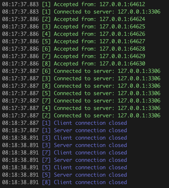 - 压测完过了一分钟(ConnMaxLifetime),所有连接被关闭了