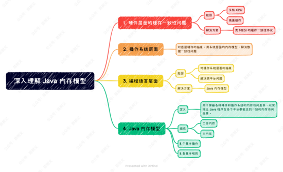Java 语言作为运行在操作系统层面的高级语言,为了解决多平台运行的问题,在操作系统基础上进一步抽象,得到了 Java 语言层面上的内存模型。