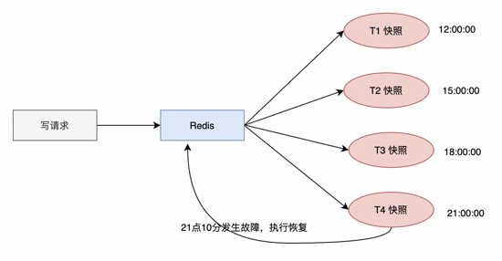 为了避免实时写入高频操作磁盘带来的负面效应。Redis提供了内存快照策略。