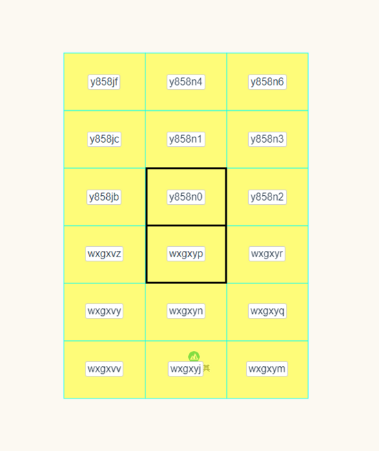 通过这种方式,最终把地图分成了下面一个个小的网格,一个 Geohash 字符串就表示了一个网格,这样查询每个网格内的商家信息,搜索是非常高效的。
