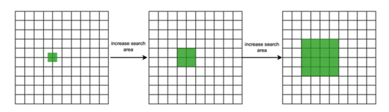 另外,当在用户在偏远的郊区时,我们可以按照下面的方式,扩大搜索范围,返回足够数量的商家。