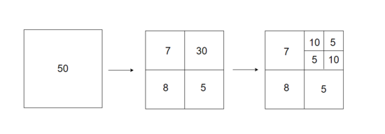 如下图,比如确保每个网格的数量不超过10,如果超过,就拆分为四个小的网格。