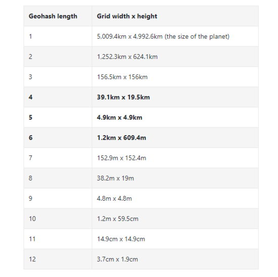 实际中,按照具体的场景选择合适的 Geohash 精度。