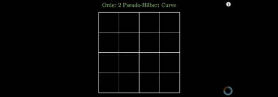 希尔伯特曲线的一个重要特点是 降维 ,可以把多维空间转换成一维数组,可以通过动画看看它是如何实现的。