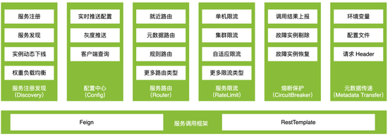 放眼 Spring Cloud 生态,能够深度整合 Spring Cloud 提供场景化服务路由能力的组件套件并不多。这里解释一下场景化,服务调用框架根据一定的规则实现服务路由的能力我们称之为底层原子能力。原子能力是非常通用的能力,但是很多时候并不能直接用于具体的业务场景。例如常见的测试环境分组,就近路由,蓝绿发布等称之为场景。服务路由只有做了场景化之后,才能真正做到开箱即用服务于业务。