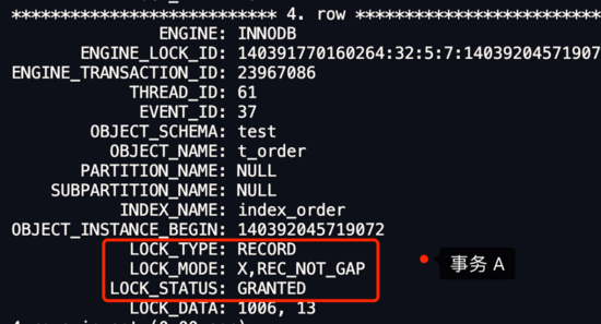 - 如果 LOCK_MODE 为X, REC_NOT_GAP,说明是记录锁。