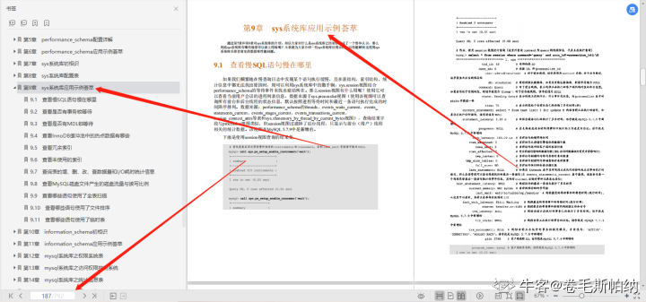 第9章sys系统库应用示例荟萃:本章就为大家介绍一些sys系统库应用示例,以便能够快速使用sys系统库来排查常见的数据库性能问题。