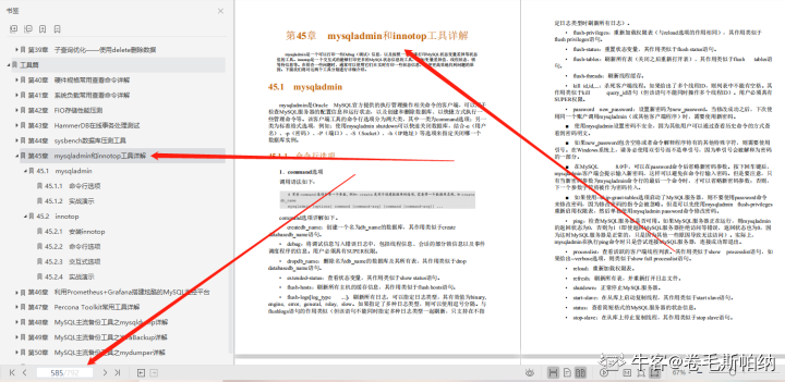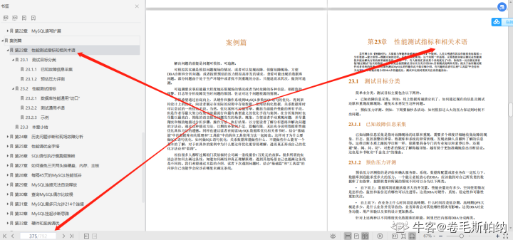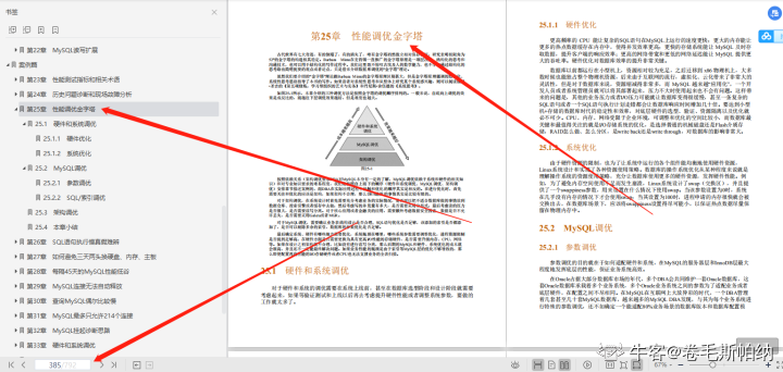 小编在这里分享一份阿里三位大牛编写的792页《千金良方MySQI 性能优化金字塔法则》本书既有涉及体系结构、PFS、 I S、统计信息、复制、锁、InnoDB等基础知识的铺垫(其实并不基础),又有众多案例详解,内容丰富、翔实,是难得一见的MySQL性能优化参考书,建议每位DBA以及从事MySQL相关应用开发的读者都读一读。