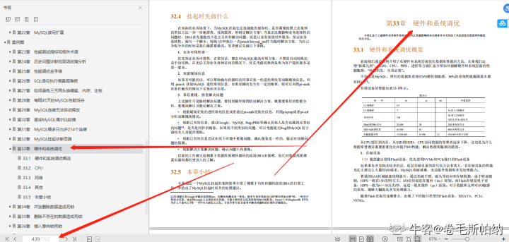 第33章硬件和系统调优:本章汇总了之前硬件或者操作系统对MySQL性能影响的相关因素并分类列出了从底层优化数据库性能的相关方法。