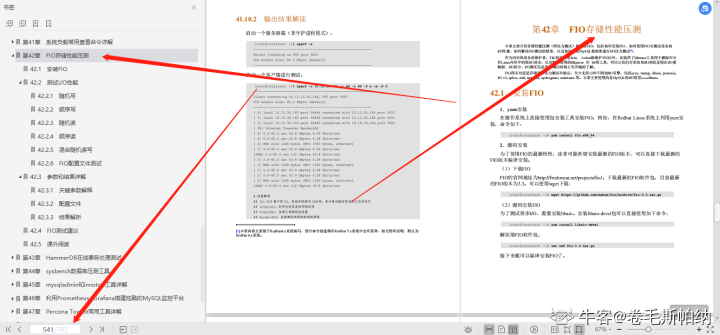 第42章FIO存储性能压测:本章主要介绍存储性能压测(即压力测试)的利器FIO,包括如何安装FIO、如何使用FIO来测试设备的I/O性能、如何解读FIO测试的结果,以及如何模拟MySQL数据库进行I/O压力测试