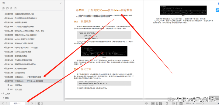 第39章子查询优化—— 使用delete删除数据:前面两章中的案例都是关于查询问题的,但是有时候我们在做删除、更新时同样会遇到性能问题,解决思路是相同的,本章讲解的就是一个删除数据时性能存在问题的案例。