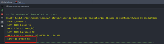 注意在这里需要添加一个分页参数的 Page 对象,我们再执行上面的代码,并对日志进行解析,查看sql语句: