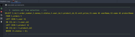 我们用插件读取日志转化为可读的sql语句,可以看到两条左连接条件都被正确地添加到了sql中: