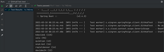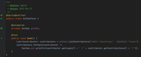 可以看到这里是通过 @Autowired 注入刚刚定义的接口的,然后就可以直接使用其来发起 HTTP 请求了,使用是不是很方便、简洁。