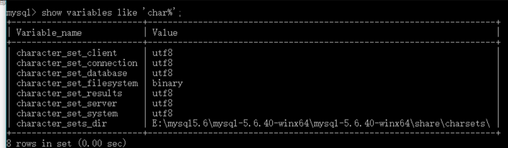 保存后重启,使用show variables like 'char%'; 就可以看到字符集已经修改为utf8了。