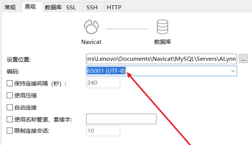 我们在创建数据库链接的时候,千万千万千万千万不能把这改成65001(UTF-8)