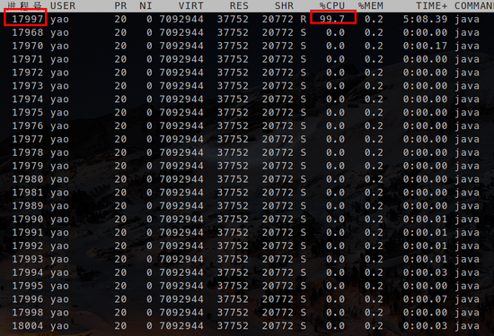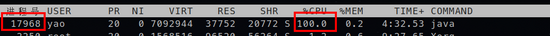 1、首先通过 top 查看到使CPU占用到100%的进程id