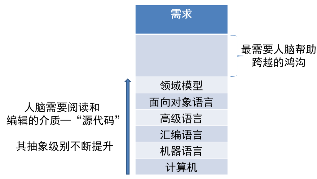 从图22中的“历史进程”来看,大趋势是人脑要编辑的“源代码”离计算机原来越远,离领域越来越近。至于最终什么样的具体形式能成为下一形式的代表,只好看各种语言的“个人奋斗”了。