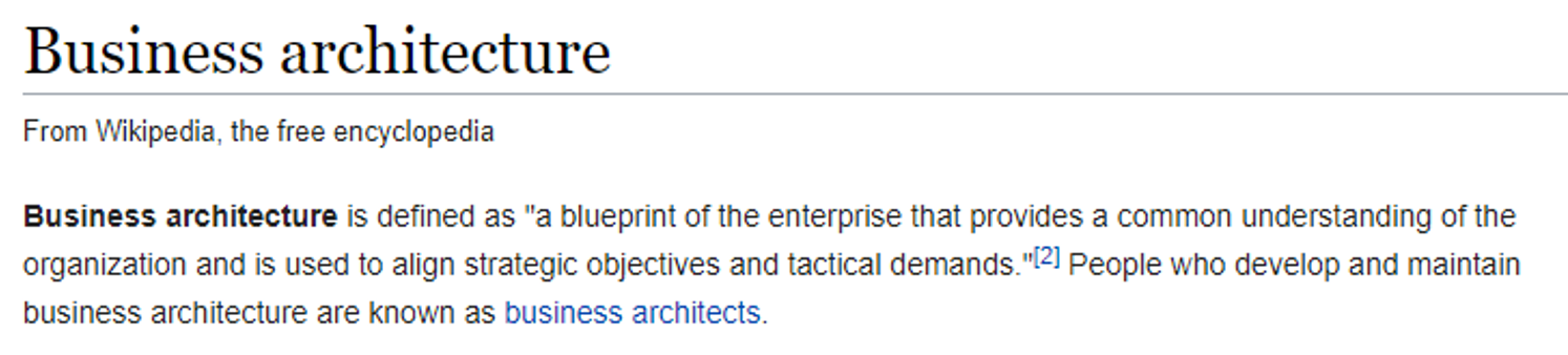 含义一:组织的内部机制。此时,“业务”作“组织”解。图9就描述了这样的机制。维基百科采用的就是这种含义,如图12。此时业务架构师应该负责的是“A-业务建模”的工作。