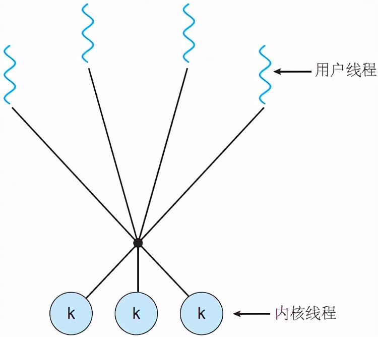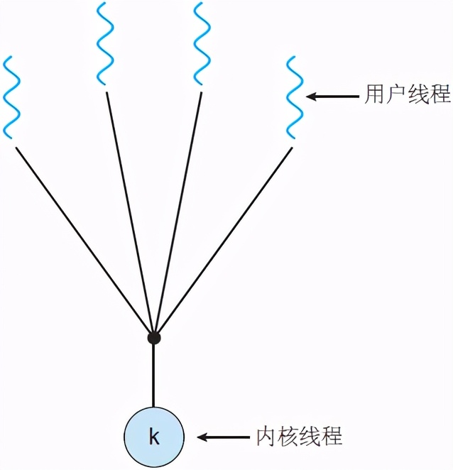 - 由于单个内核线程只能在单个 CPU 上运行,因此多对一模型不允许在多个 CPU 之间拆分单个进程