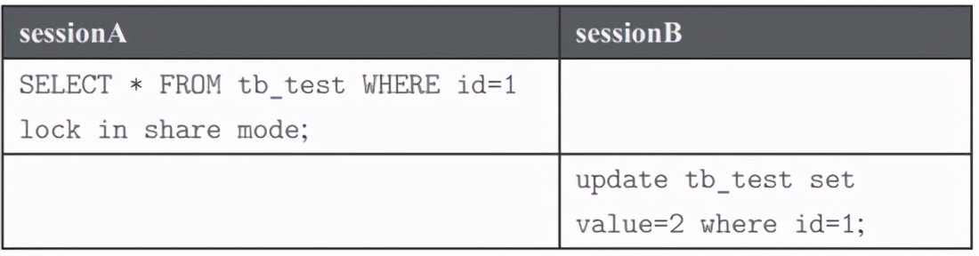 注意到,与上一个例子的不同之处是,此场景下,session A 的查询条件为 id。此时,session B 并不会被阻塞,这是否与前面的讨论矛盾呢?