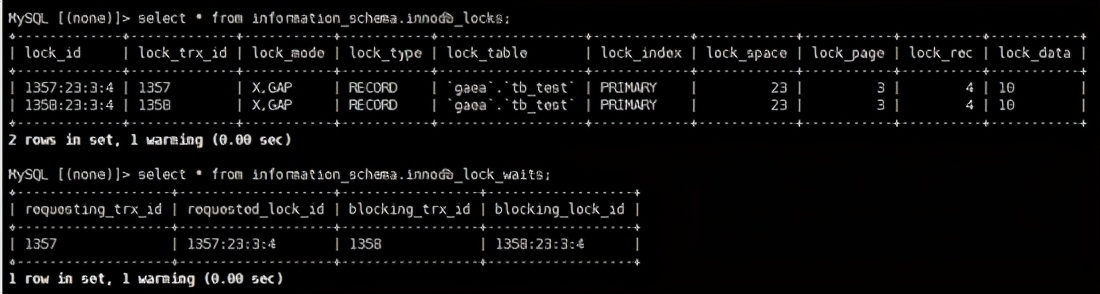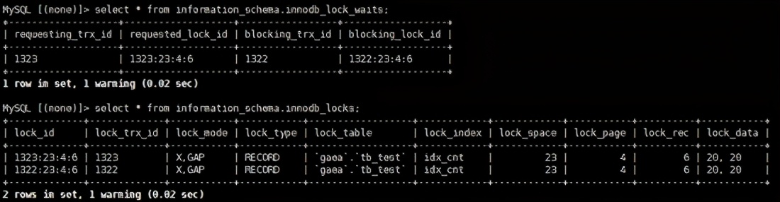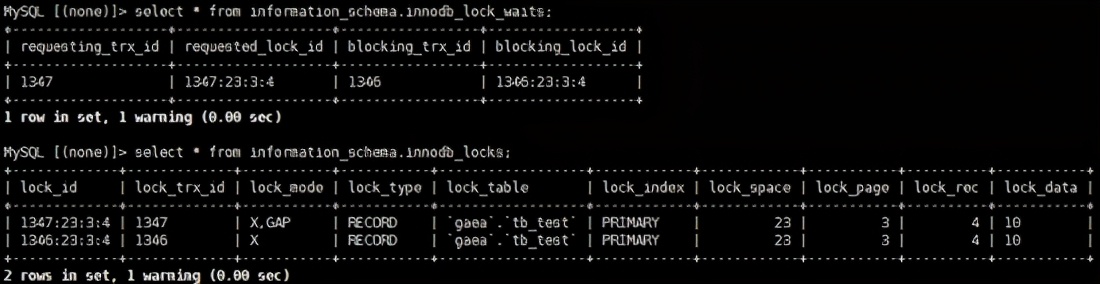| lock_id | lock_trx_id | lock_mode | lock_type | lock_table | lock_index |