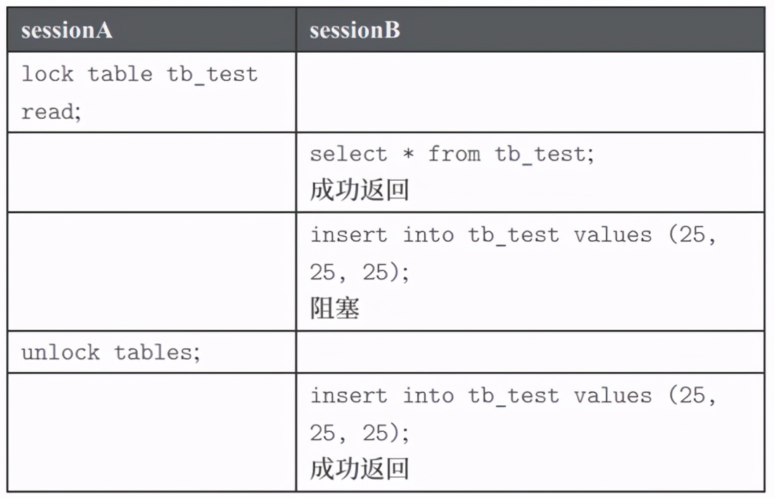 锁定表读时,不影响其他查询,但阻塞其他数据更新类操作。