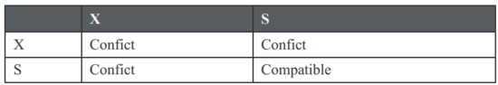 可以看到,只有共享锁之间兼容,其他组合之间都是冲突的。