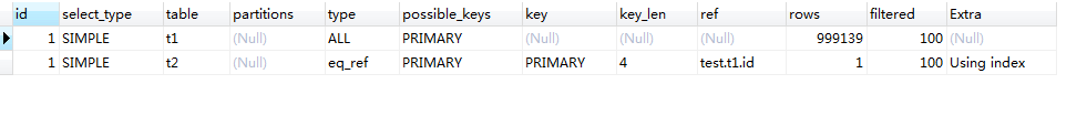 注意此时,t1 表数据量为 100W, t2 表数据量为 200W 。
