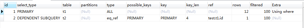 -- 此为 5.7 写法,如果是 5.6版本,需要用 explain extended ...
