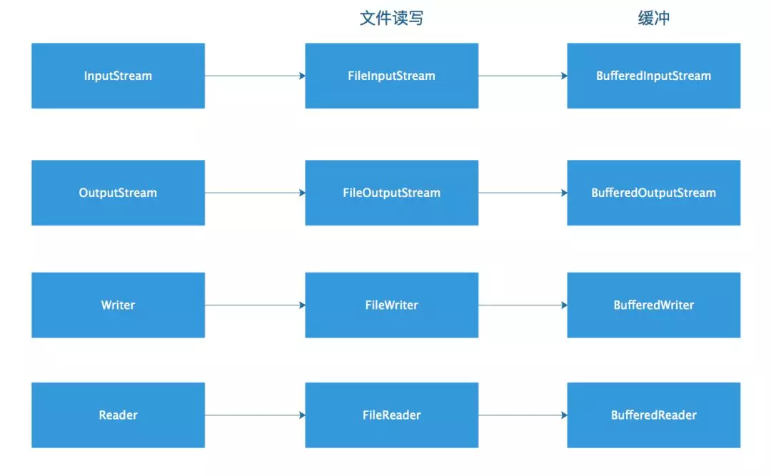 InputStream、OutputStream、Writer和Reader配套使用的缓冲组件。