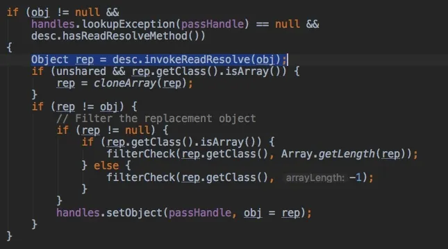 A:因为反序列化过程中,在反序列化执行过程中会执行到ObjectInputStream#readOrdinaryObject方法,这个方法会判断对象是否包含readResolve方法,如果包含的话会直接调用这个方法获得对象实例。