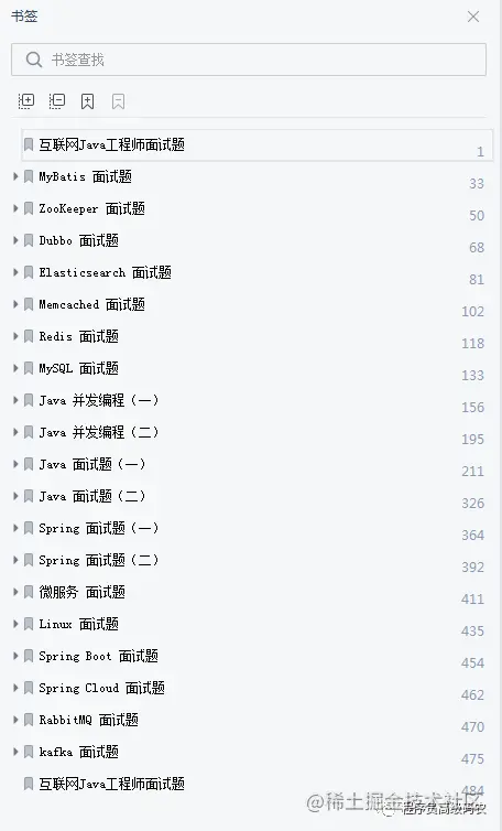这套互联网Java工程师面试题包括了:MyBatis、ZK、Dubbo、EL、Redis、MySQL、并发编程、Java面试、Spring、微服务、Linux、Springboot、SpringCloud、MQ、Kafka面试专题(共485页,32W字)下面将这份面试手册展示给大家