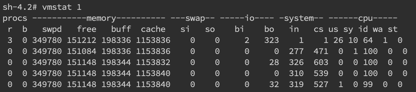 针对频繁上下文问题,我们可以使用vmstat命令来进行查看
