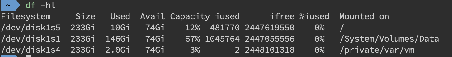 磁盘问题和 CPU 一样是属于比较基础的。首先是磁盘空间方面,我们直接使用df -hl来查看文件系统状态
