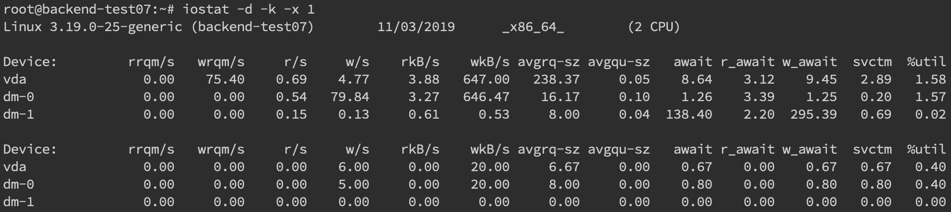 更多时候,磁盘问题还是性能上的问题。我们可以通过 iostatiostat -d -k -x来进行分析
