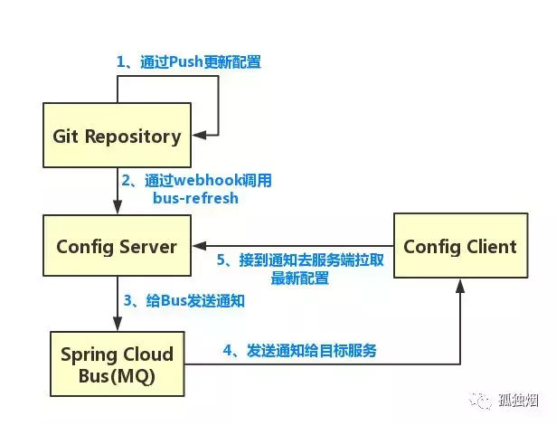 因为一个配置中心应该要能够做到,配置发生改动的时候,项目能够自动感知,自动更新配置才对。在Spring-Cloud-Config中,这套机制是借助一些代码仓库(SVN、Github等)提供的Webhook机制加上Spring-Cloud-Bus来实现的。