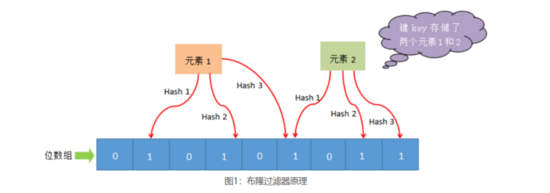 布隆过滤器使用exists()来判断某个元素是否存在于自身结构中。当布隆过滤器判定某个值存在时,其实这个值只是有可能存在;当它说某个值不存在时,那这个值肯定不存在,这个误判概率大约在 1% 左右。