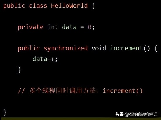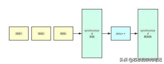 但是,如此简单的data++操作,都要加一个重磅的synchronized锁来解决多线程并发问题,就有点杀鸡用牛刀,大材小用了。