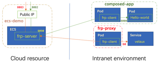 - 2)使用 ECS 实例作为隧道服务器,为内网环境中的任何容器服务提供公共访问。