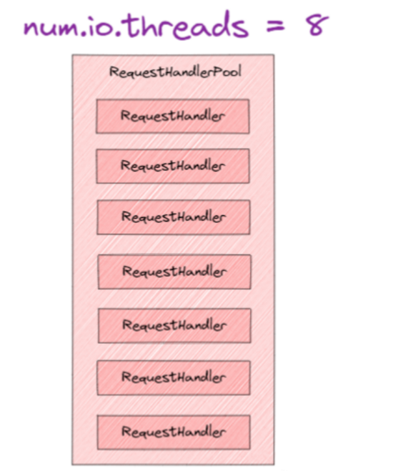 其中 num.io.threads 就是 I/O 工作线程池的大小配置,即 KafkaRequestHandlerPool 线程池,它才是「 真正处理 Kafka 请求 」的地方。