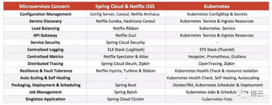 两个平台 Spring Cloud 和 Kubernetes 非常不同并且它们之间没有直接的相同特征。