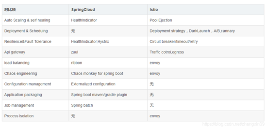 可以看到,里面差不多一半关注点是和运维相关的。这么看来,似乎拿spring cloud和kubernetes比较有点不公平,spring cloud只是一个开发框架,对于应用如何部署和调度是无能为力的,而kubernetes是一个运维平台。