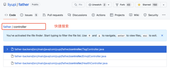 其实,我们只需按下 t 键,就可以快速、实时地对仓库内的所有文件进行搜索了。