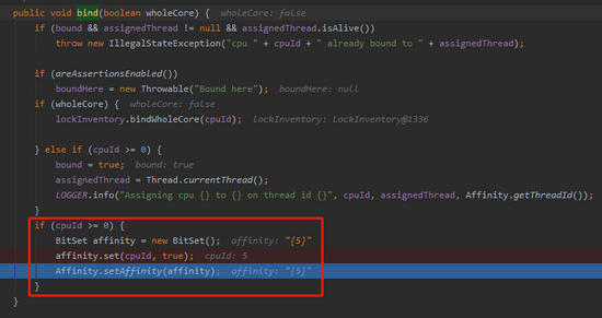 这里采用的是 BitSet,想绑定到第几个 CPU 就把第几个 CPU 的位置设置为 true。