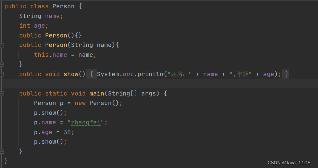当一个类中没有定义任何构造方法时,编译器会自动添加一个无参空构造方法,叫做默认/缺省构造方法,如:Person(){}