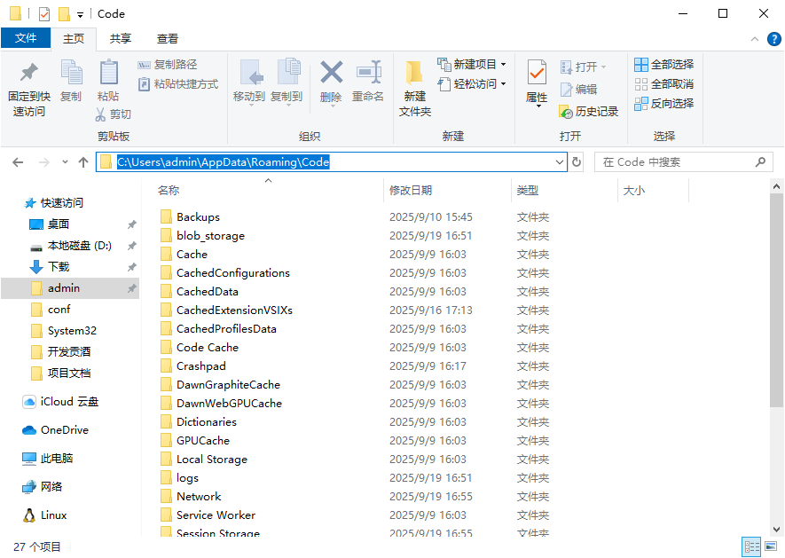 C:\Users\${username}\AppData\Roaming\Code,主要是配置缓存信息,删掉: