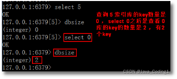 默认使用第0个,如果要使用其他数据库,命令是 select index