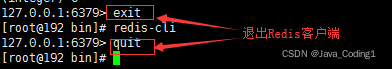 2、退出Redis客户端:exit或者quit指令。