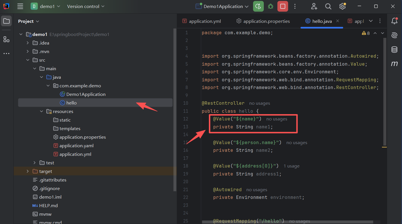 yml中我们可以配置两种内容。其中一种是可以被springboot自动识别的,第二种内容是我们自定义的,需要我们把内容读取出来。